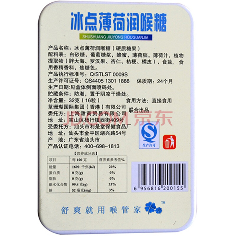 喉管家 冰点薄荷润喉糖 32g