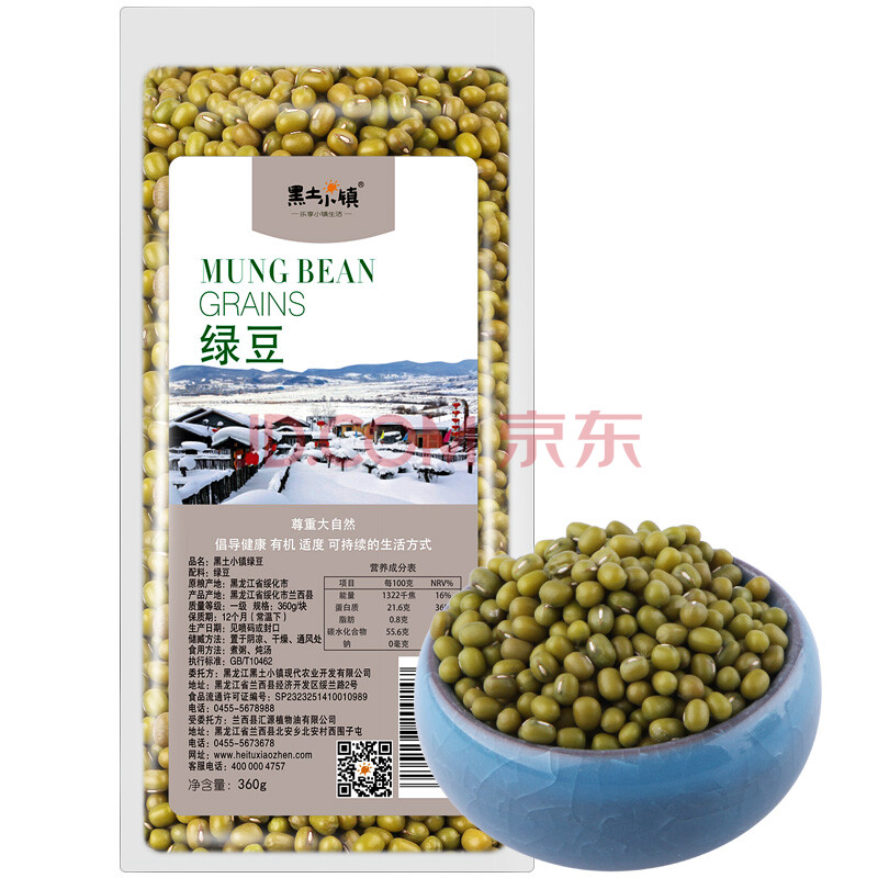 黑土小镇 绿豆 360g(真空装 东北五谷杂粮 粗粮 青小豆)