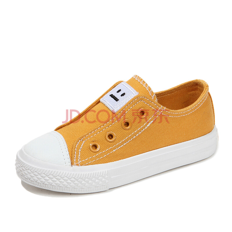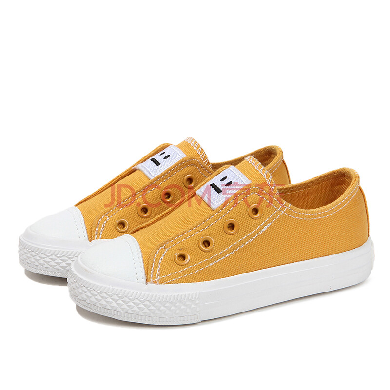 蜡笔小新儿童帆布鞋一脚蹬懒人学生鞋男童女童新型卡通笑脸休闲板鞋 X-875 姜黄 37