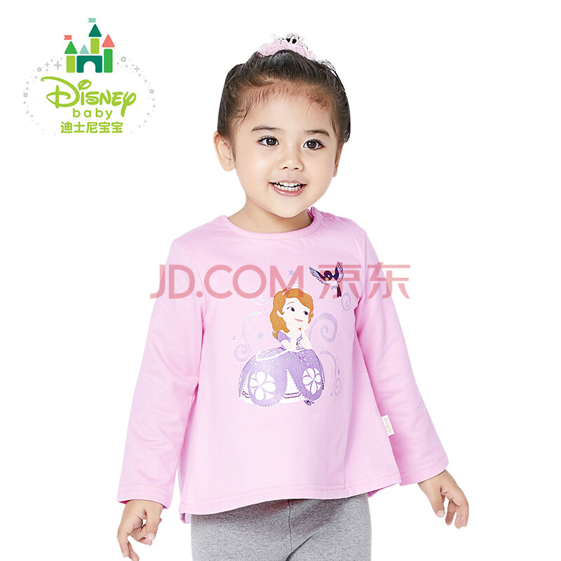 迪士尼(Disney)春季女童卫衣纯棉蕾丝拼接上衣休闲卡通外出服163S832 粉色 80cm