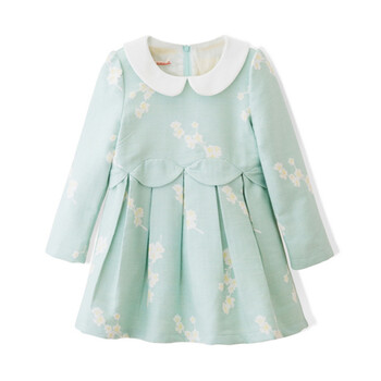 弗萝町Flordeer 法国童装女童提花娃娃领连衣裙F6001粉绿色140