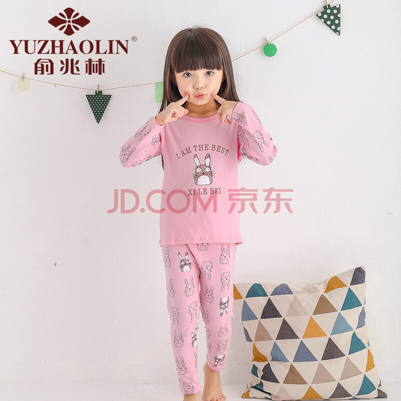 俞兆林 YUZHAOLIN 儿童内衣 莱卡棉睡衣打底秋衣秋裤套装YL16T1390粉色龙猫120码