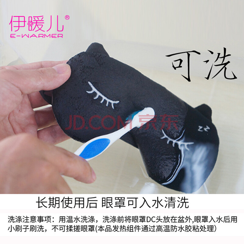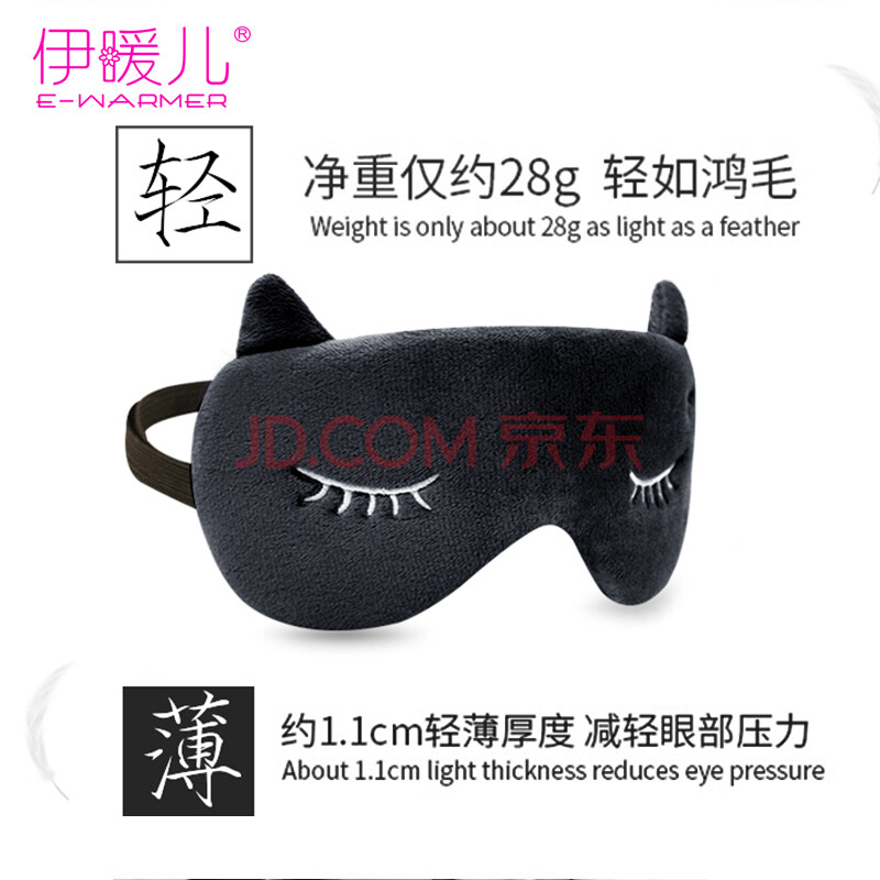 伊暖儿(e·warmer)超薄轻盈恒温型 蒸汽热敷眼罩USB 充电远红外加热 敷眼护眼帮助睡眠 防水易清理 黑猫