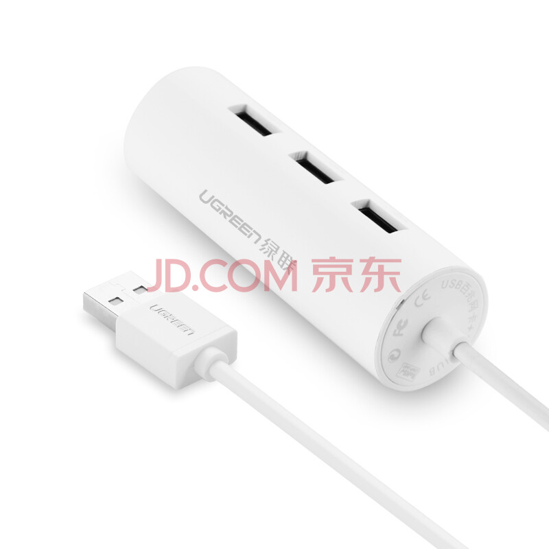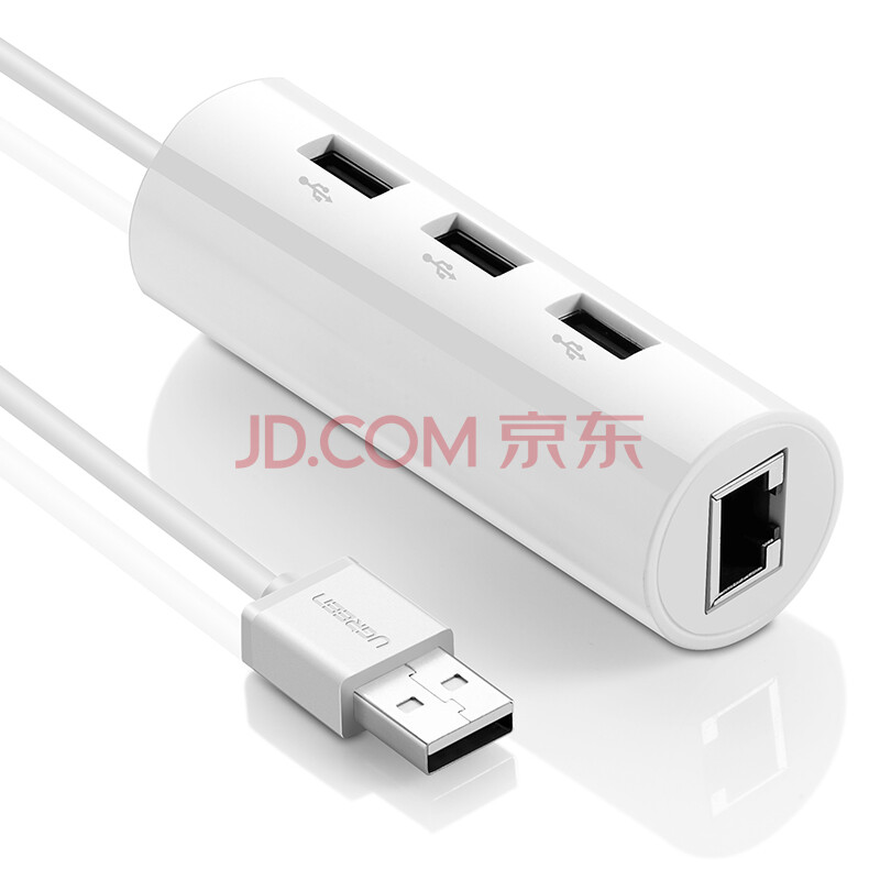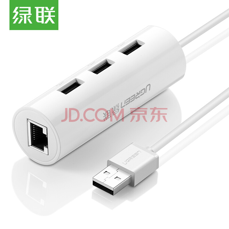 绿联(UGREEN)USB2.0转RJ45网线接口 USB有线百兆网卡 3口HUB分线器集线扩展器苹果Mac电脑网卡转换器20267