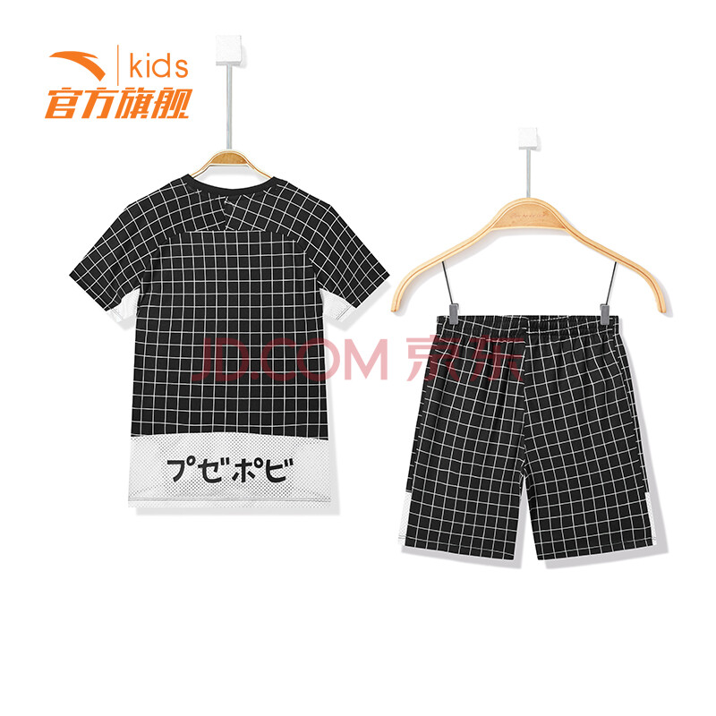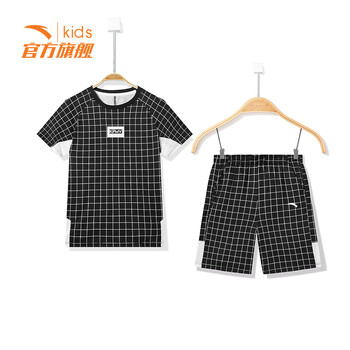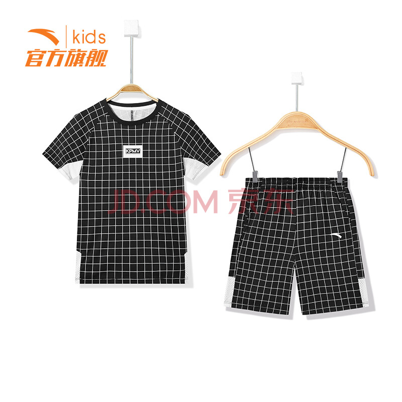 安踏(ANTA)男童装中大童套装儿童运动两件套装A35827201经典黑130