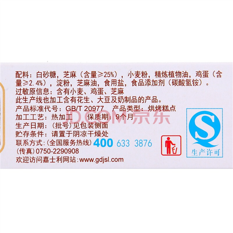 嘉士利 饼干蛋糕 零食早餐点心 香薄趣薄脆饼干 芝麻味160g/盒