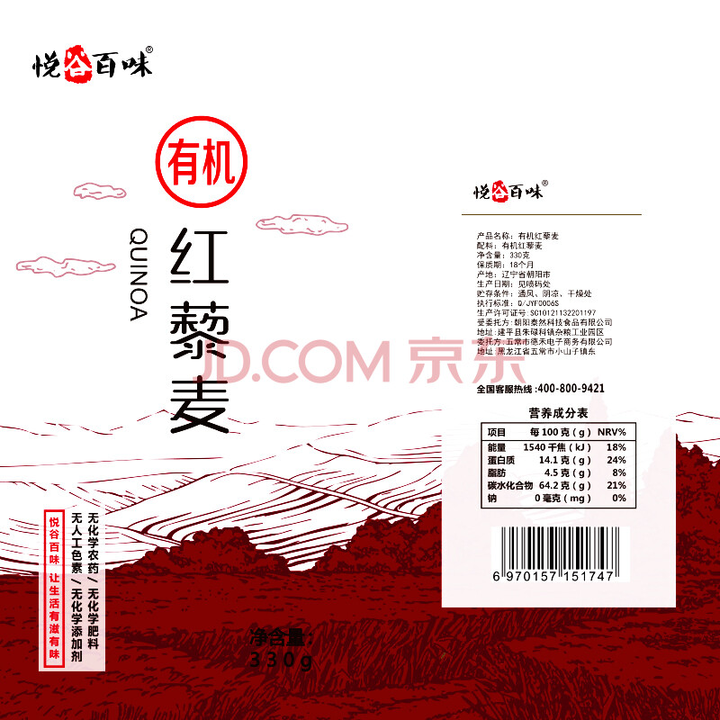 悦谷百味 有机红藜麦(无添加 黎麦 三色藜麦米搭档 五谷杂粮 粗粮)330g