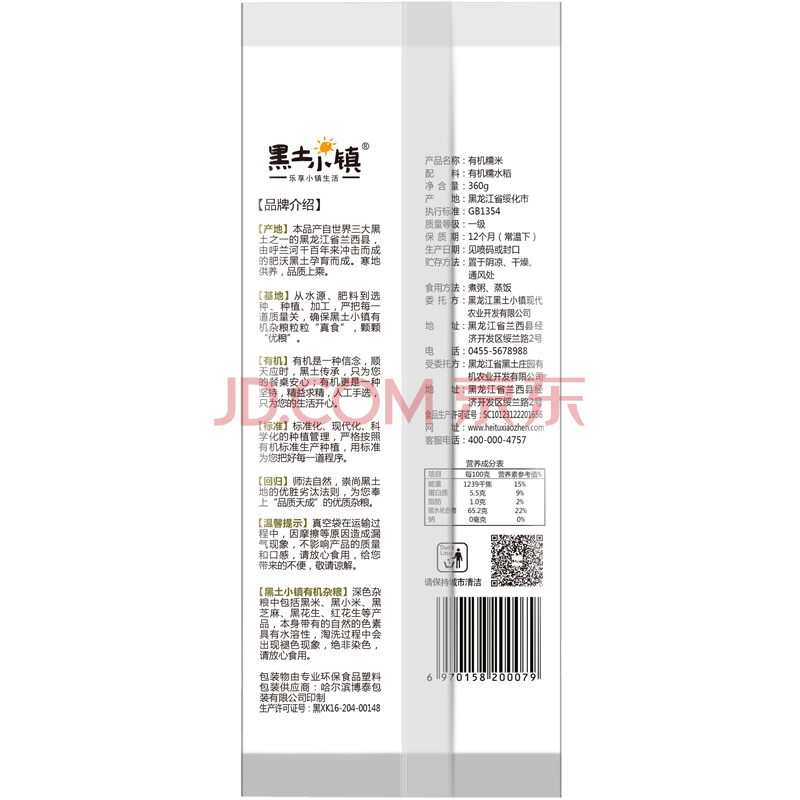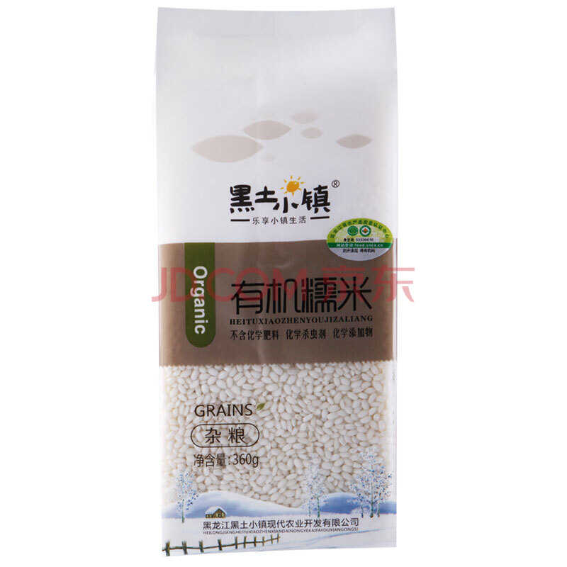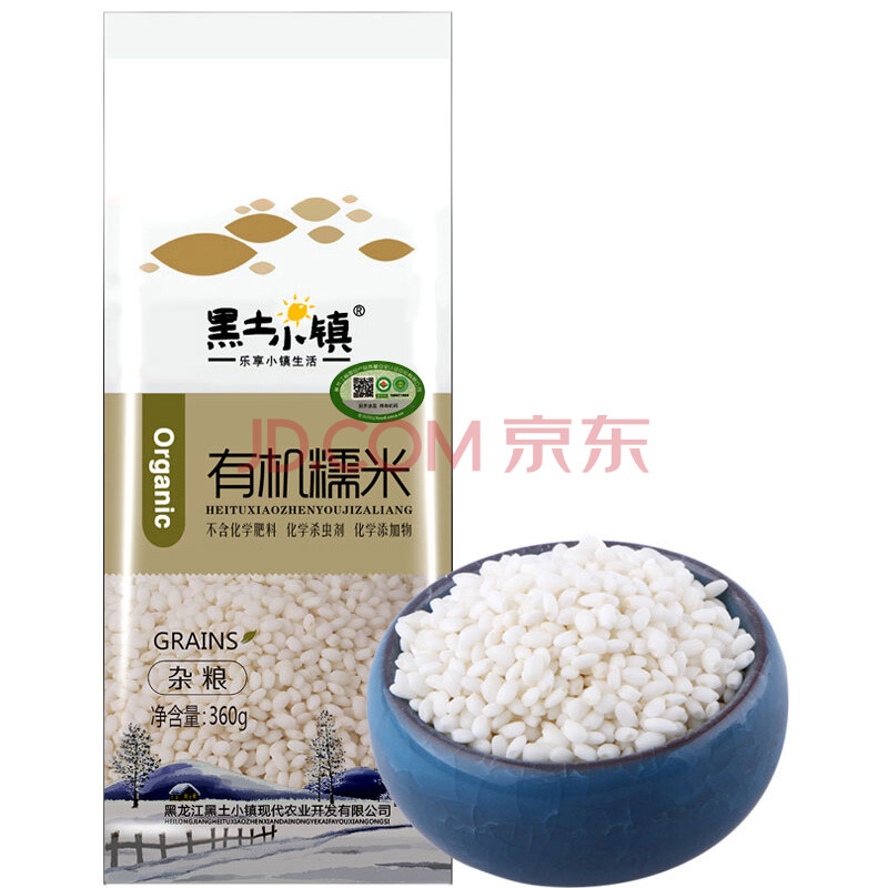 黑土小镇 有机 糯米 360g(真空装 东北五谷杂粮 粗粮 江米 粘大米)