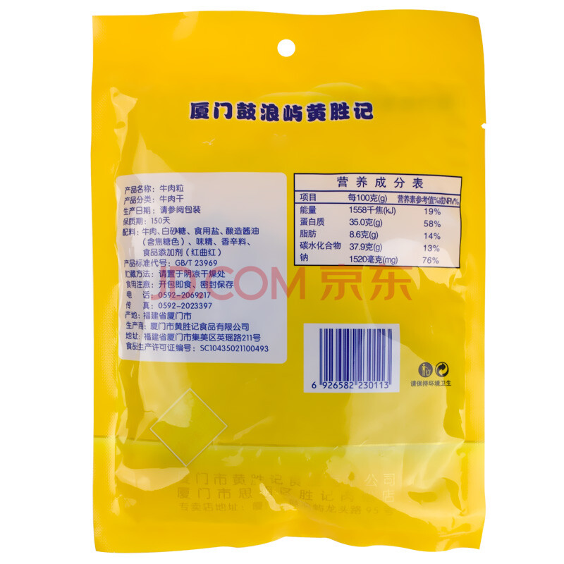 黄胜记 原味牛肉粒100g/袋厦门鼓浪屿特产休闲食品肉类零食小吃(新旧规格变更)