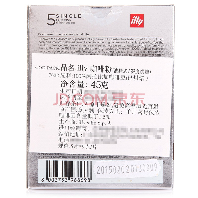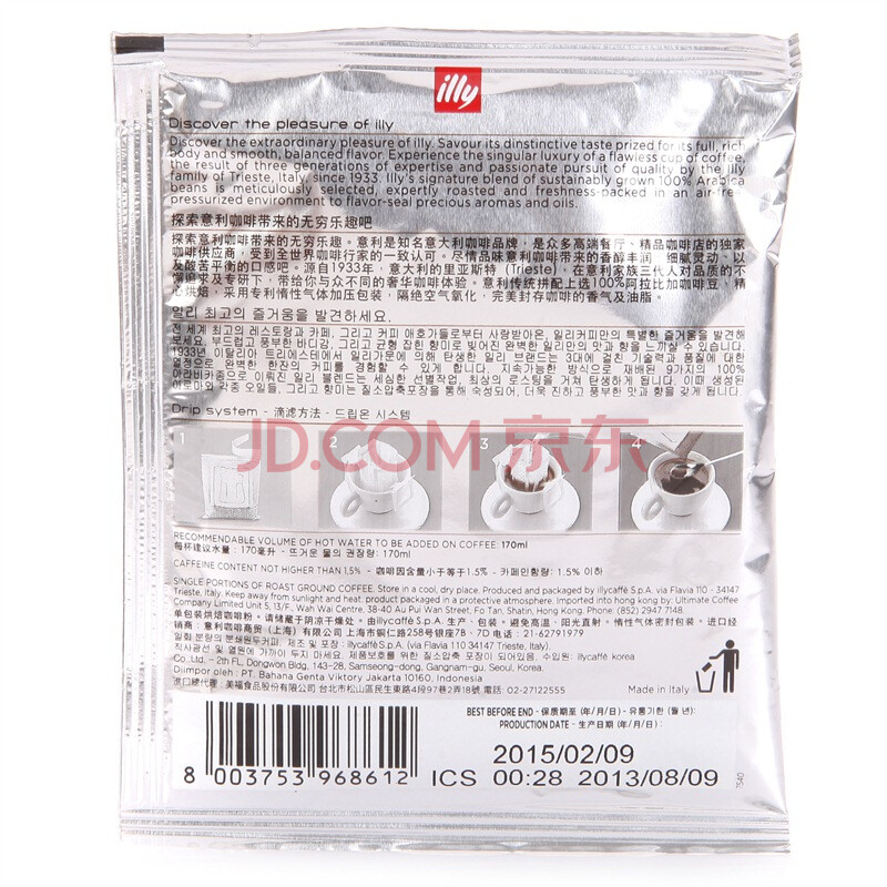 意大利进口 意利(illy)咖啡粉深度烘焙45g(滤挂式)