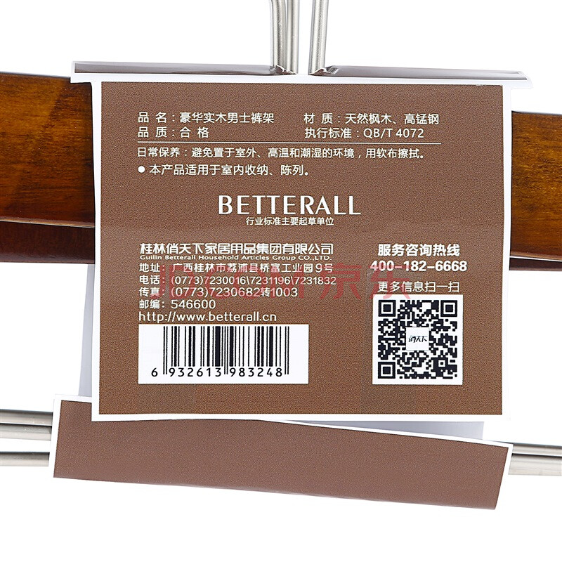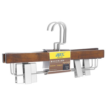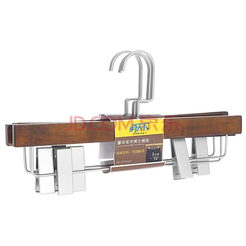 俏天下衣架晾衣架实木衣架男士裤夹3只装QTX8324