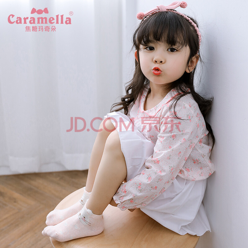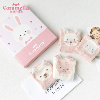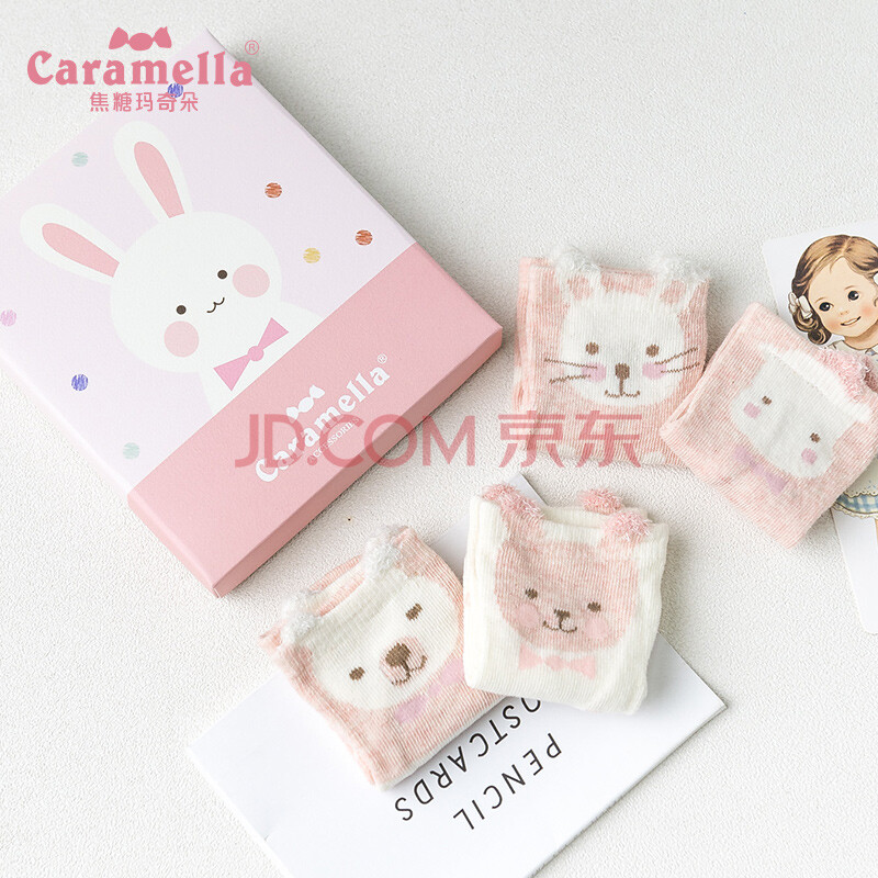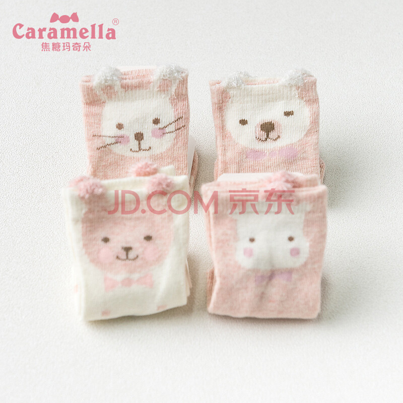caramella儿童袜子男童女童舒适薄款透气卡通船袜4双装礼盒 浅粉 S(建议1-3岁)