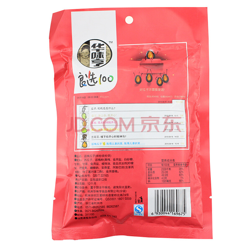 华味亨 话梅瓜子188g/袋 坚果 休闲食品 零食小吃