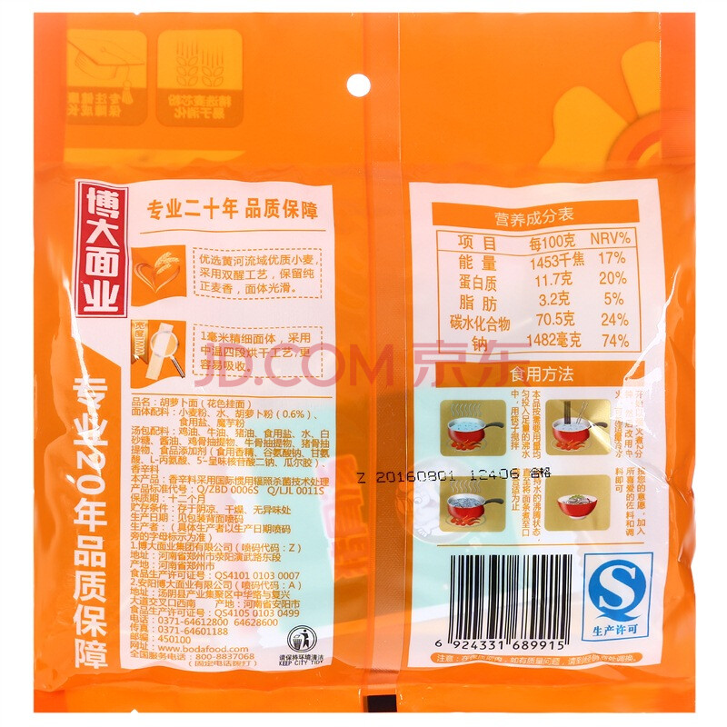 博大 面条 儿童挂面 带酱包 骨汤·胡萝卜面 275g 婴幼儿面条宝宝辅食