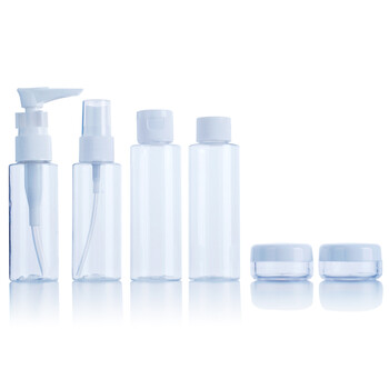 双艺 日式分装瓶 60毫升2只+50毫升2只+霜盒2只 旅行化妆水喷瓶 喷雾瓶 便携补水细雾小喷壶