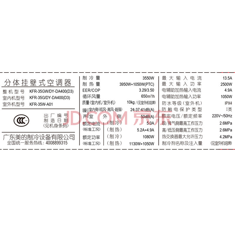 美的(Midea)1.5匹 定速 冷暖 空调挂机 省电星 KFR-35GW/DY-DA400(D3)