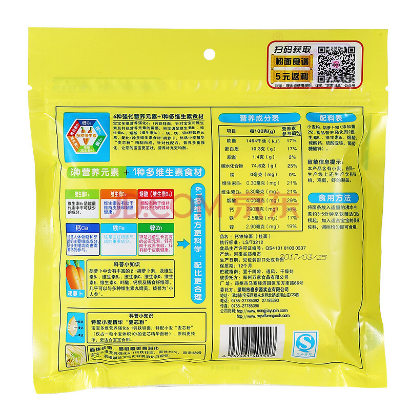 农家御品 钙铁锌面 宝宝婴儿营养面条儿童辅食面条218g