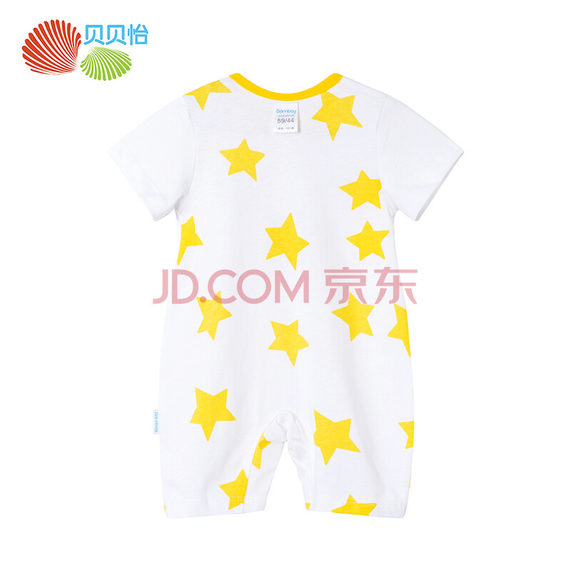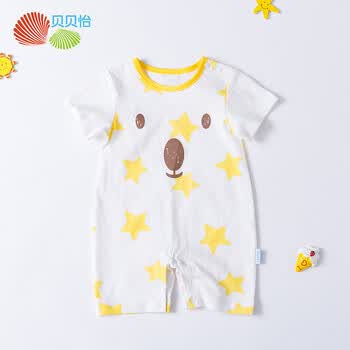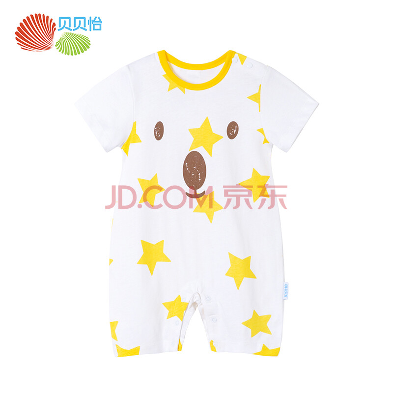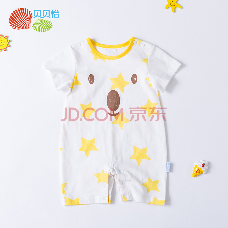 贝贝怡 婴儿衣服纯棉短袖连体衣夏季新款男宝宝连身衣透气哈衣182L138 黄色 6个月/身高66cm