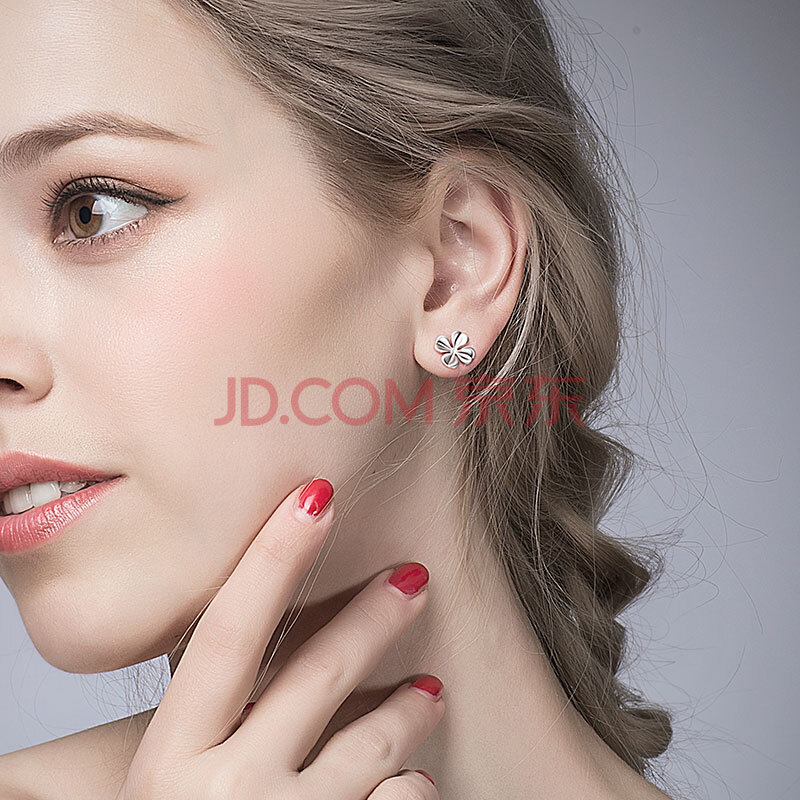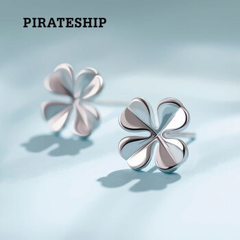 海盗船 pirateship 925银耳钉女时尚清新四叶草耳钉镀白金送她的礼物 银耳钉