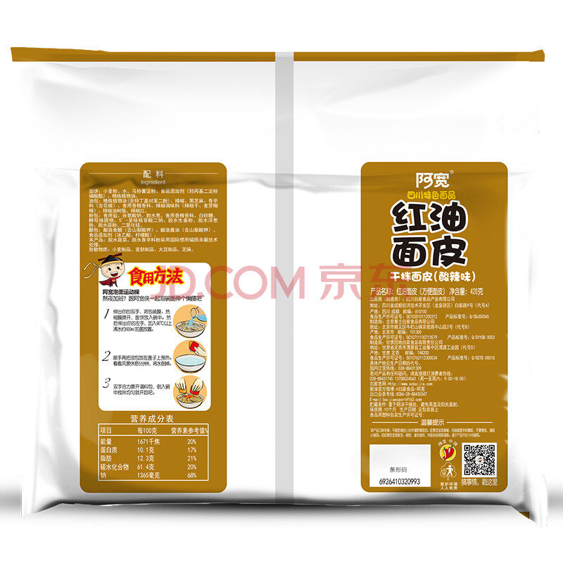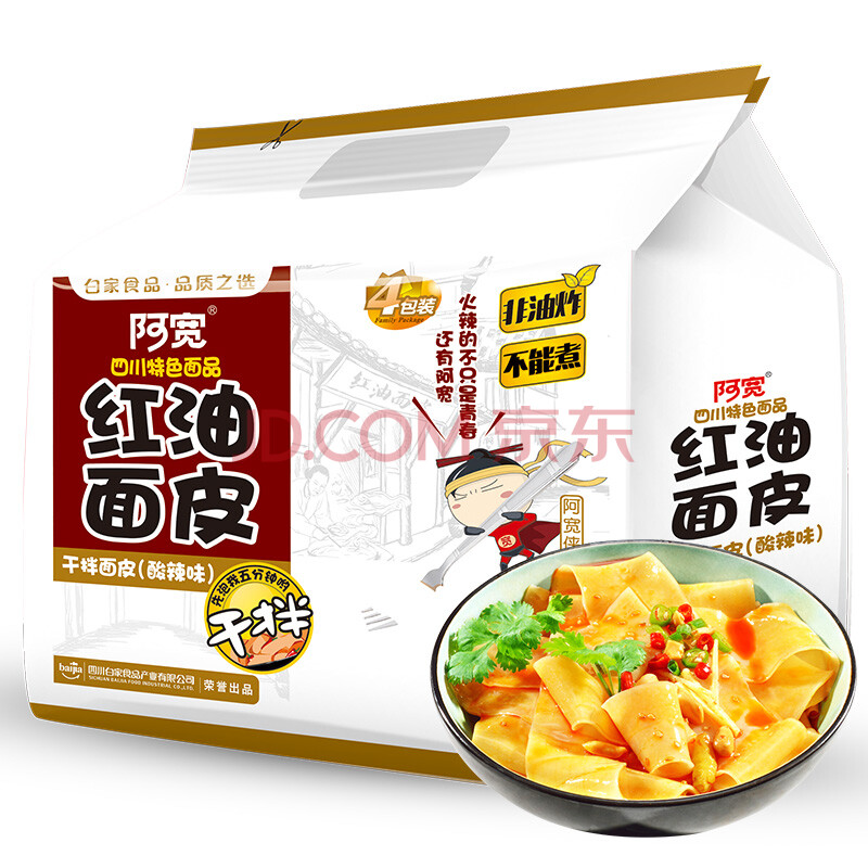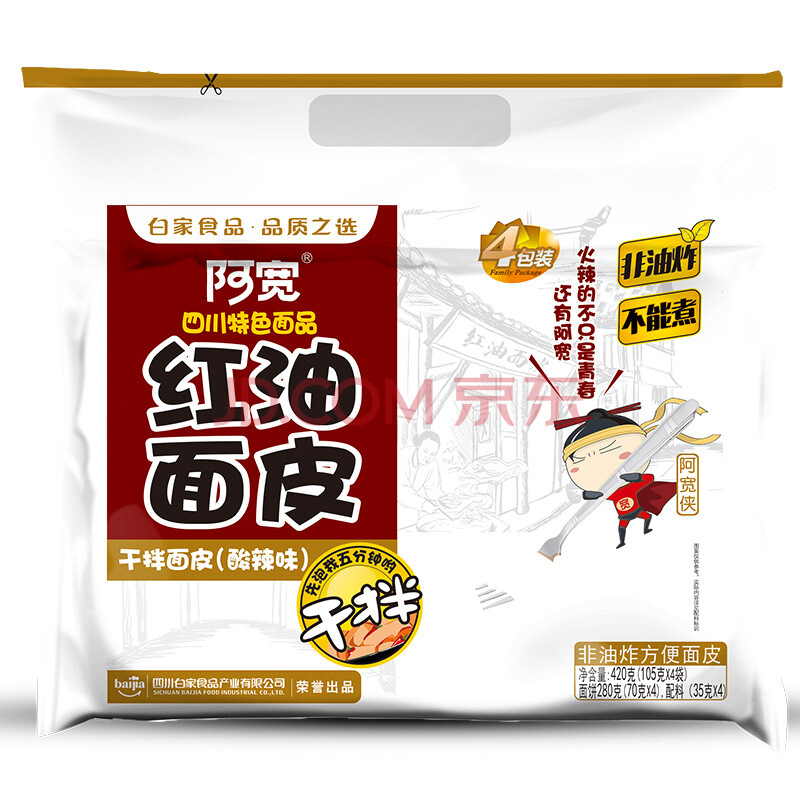 阿宽 四川铺盖面红油面皮四包装 非油炸方便面 袋装宽面泡面 白家干拌面红油凉皮 420g