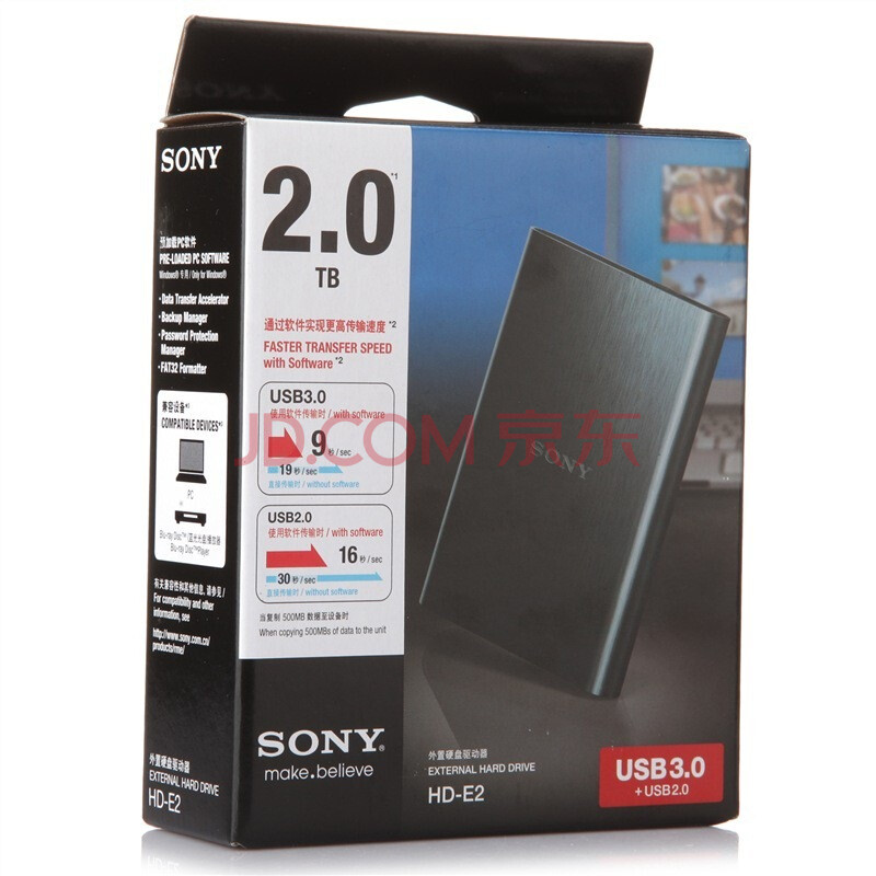 索尼(SONY)HD-E2/B 高速 金属外壳 2TB 移动硬盘(黑色)