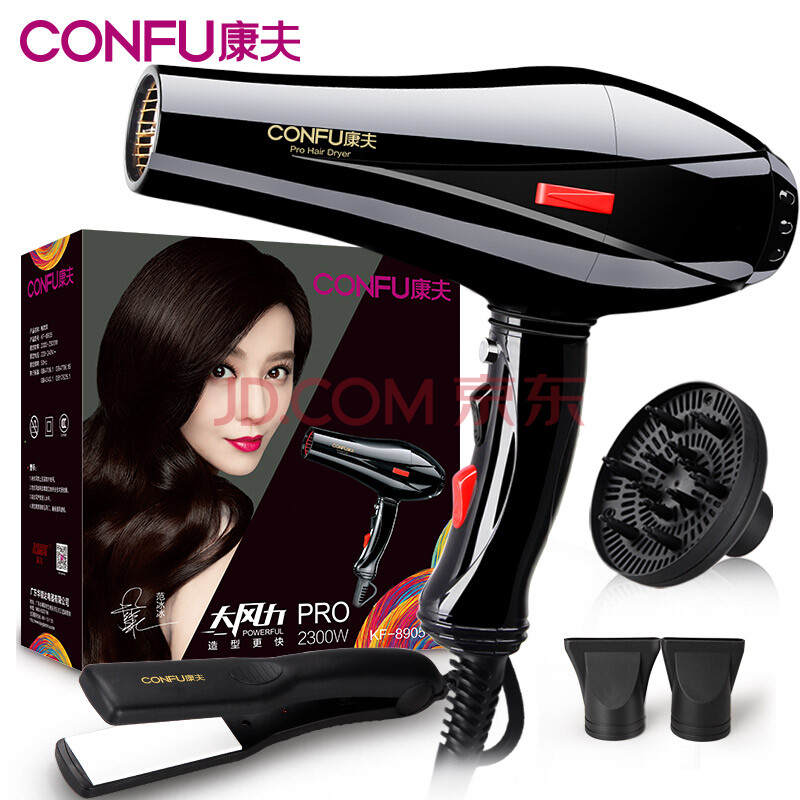 康夫(Kangfu)电吹风机家用 KF-8905 美发套装2300W大功率吹风筒(含直发器和造型风罩)