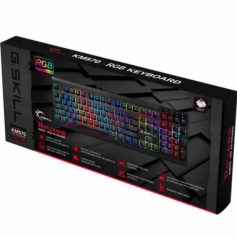芝奇(G.SKILL)KM570 RGB幻彩专业版 108键机械键盘 樱桃茶轴 黑色 绝地求生吃鸡键盘