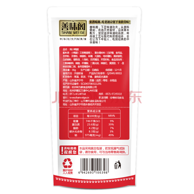 善味阁 休闲零食小吃 真空包装 真空香卤味熟食 鸭腿肉 孜然烤鸭腿36g
