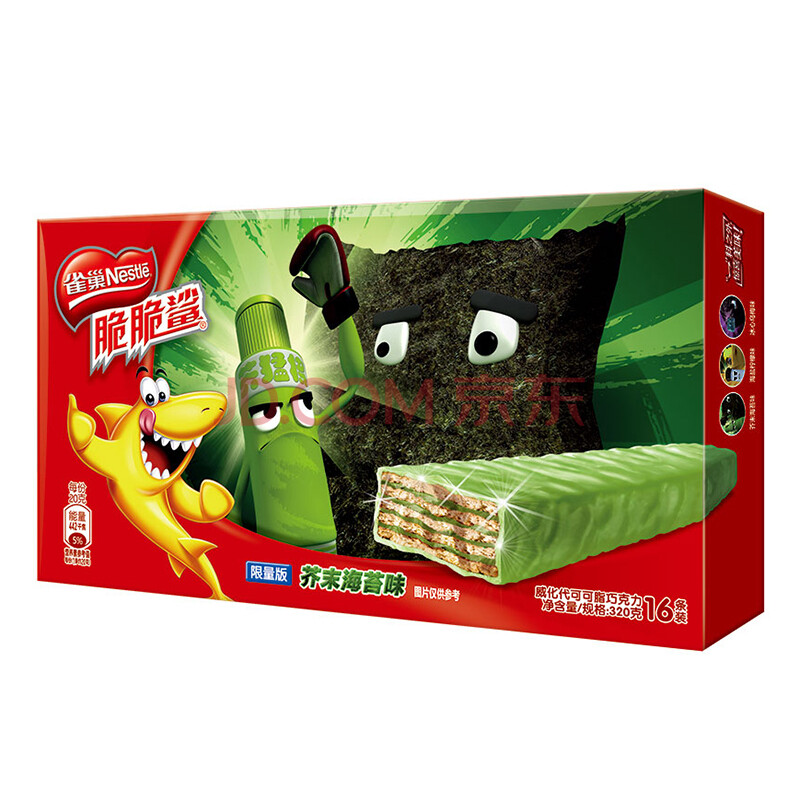 雀巢(Nestle)脆脆鲨 休闲零食 威化饼干 芥末海苔味限量装16条*20g(2018新品限量款)