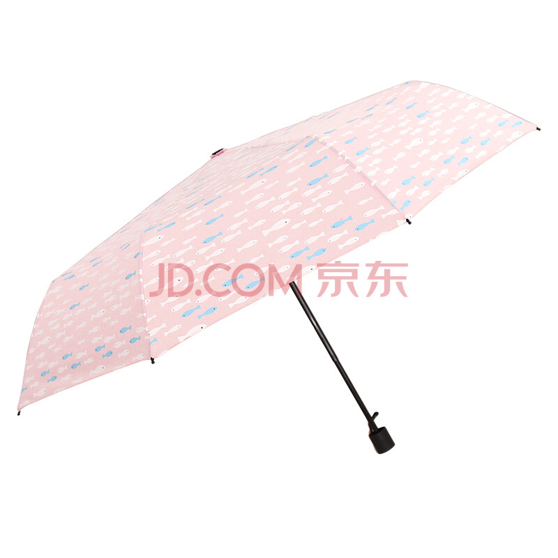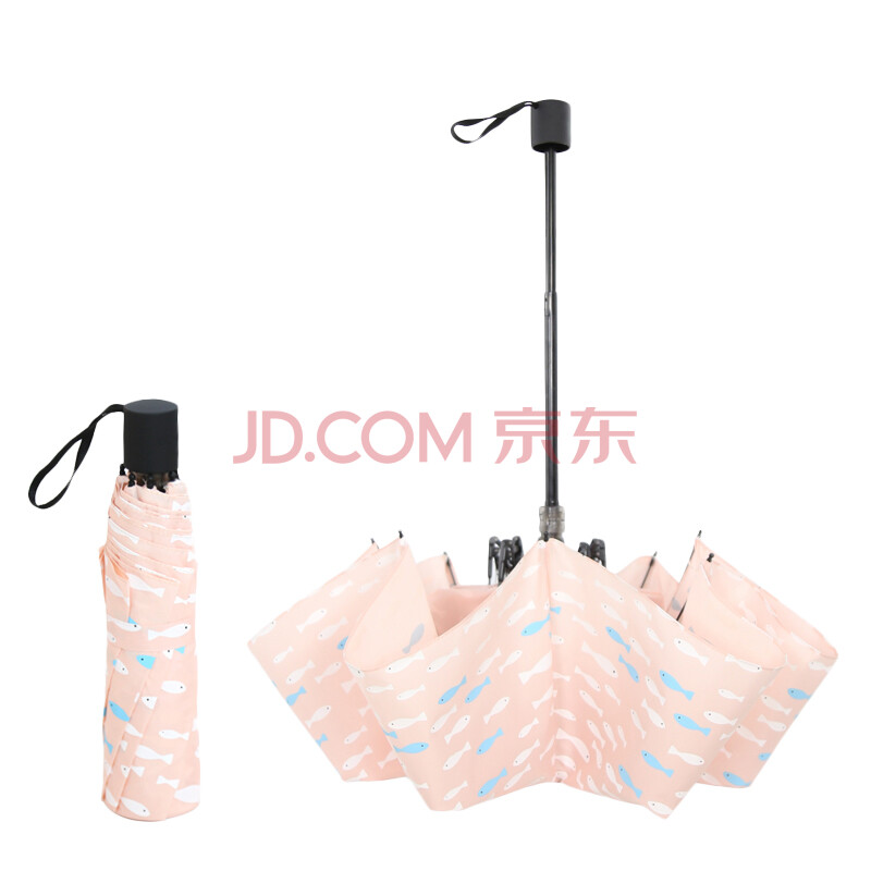 C'mon 穿鱼伞A1606 雨伞男女晴雨伞防风创意折叠三折伞 粉色无胶款
