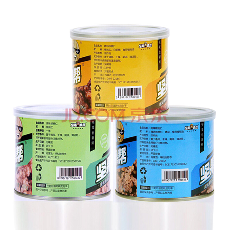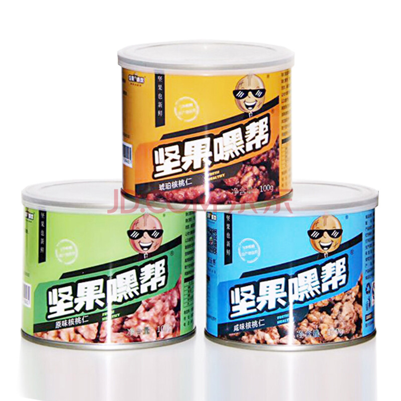 坚果嘿帮 休闲零食 (原味+咸味+琥珀)核桃仁组合装 100g*3罐