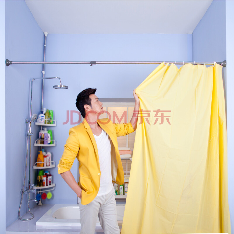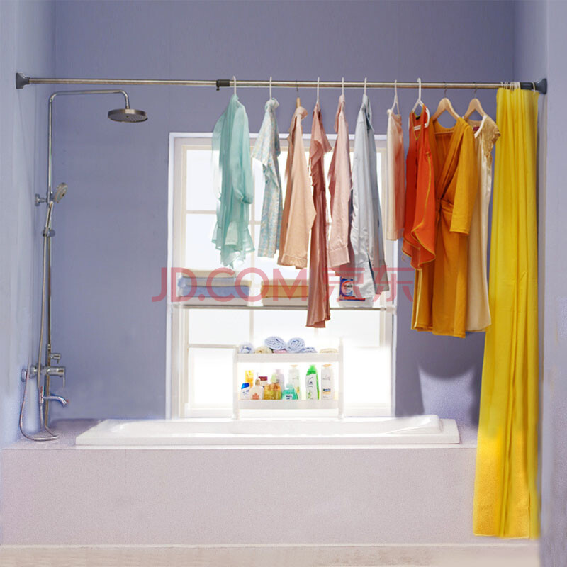 宝优妮浴帘杆 浴帘 套装免打孔多用途多功能可伸缩不锈钢浴杆 103.5cm-152cm 送浴帘DQ-0116