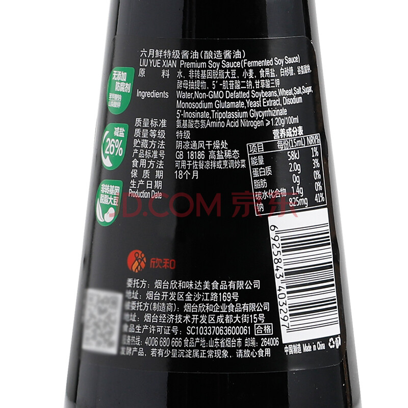 欣和 六月鲜 特级酱油 500ml 生抽厨房调料