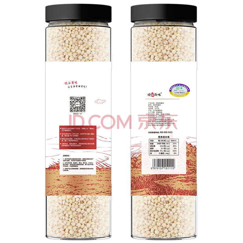 悦谷百味 有机高粱米(无添加 五谷杂粮 大米伴侣 粥米搭档 东北粗粮)340g