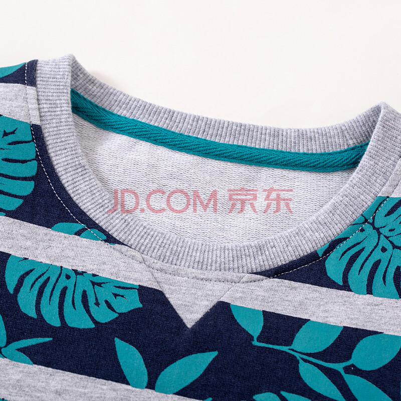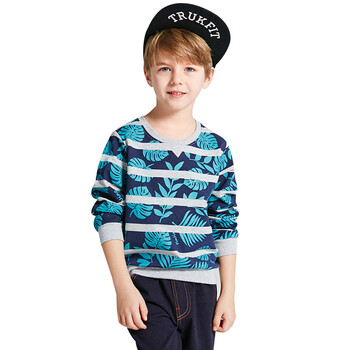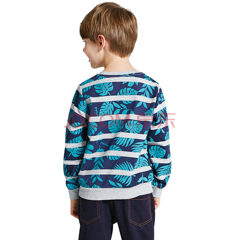 纤丝鸟(TINSINO)童装新款儿童套头卫衣中大童长袖上衣男童宝宝韩版打底衫 条纹树叶THY9110003 蓝绿130