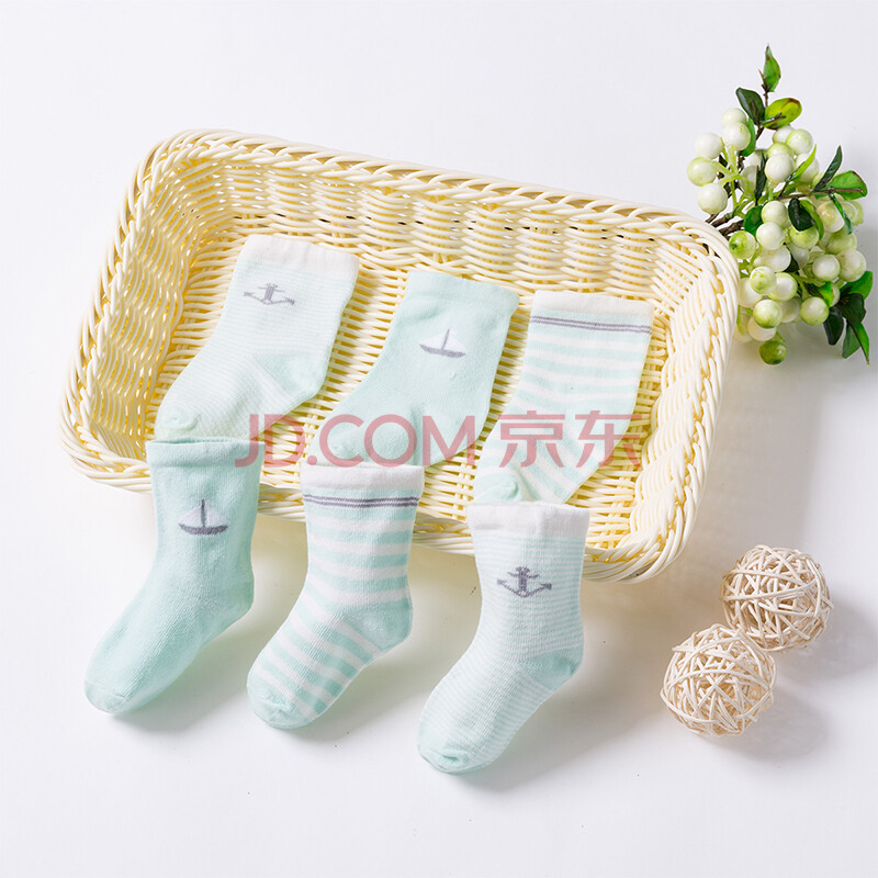 贝贝怡 Bornbay 袜子 宝宝袜子舒适柔软防滑胶粒三条装袜子 173P341 绿色 2-3岁
