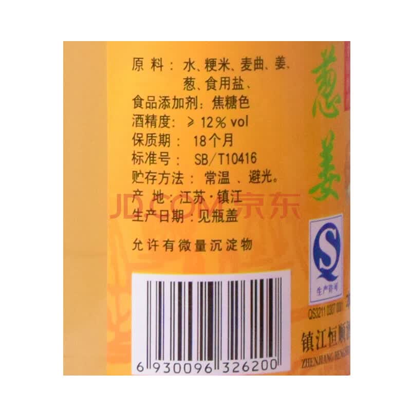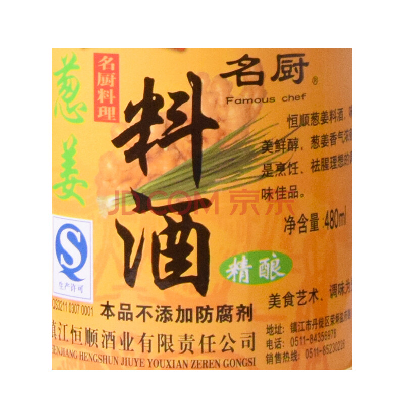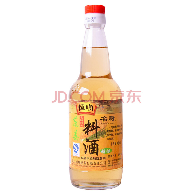 恒顺葱姜料酒 烹饪调料无防腐调味品瓶装480ml中华老字号