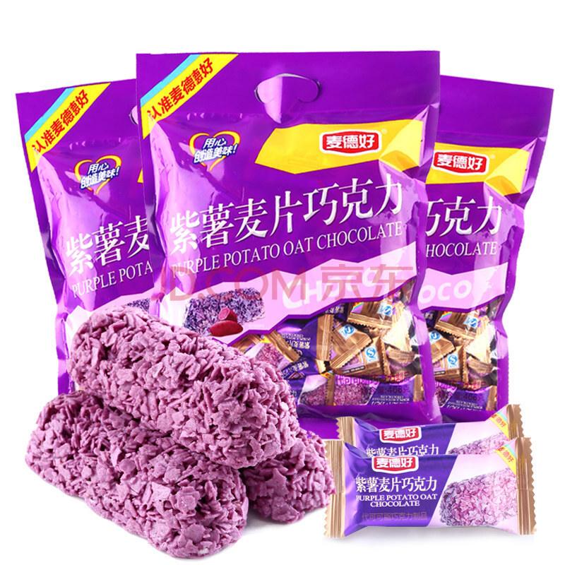 麦德好 燕麦巧克力 营养麦片力 休闲零食大礼包 婚庆喜糖果饼干 紫薯味468g