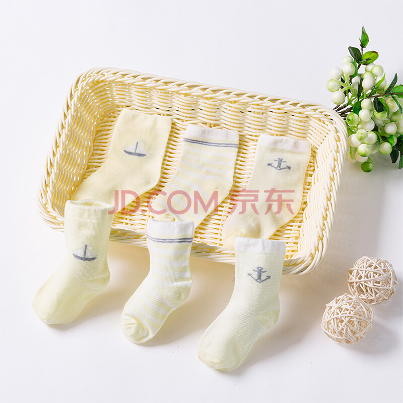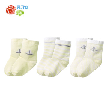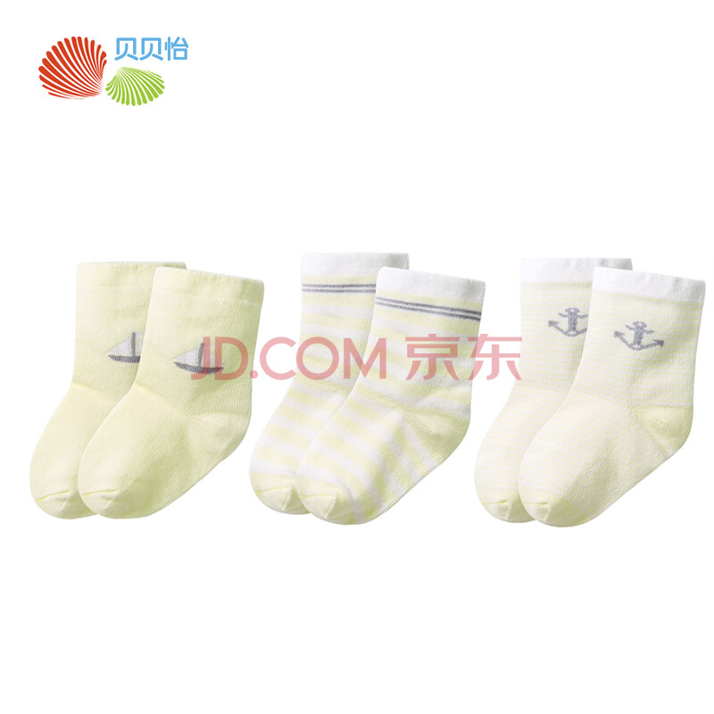 贝贝怡 Bornbay 袜子 宝宝袜子舒适柔软防滑胶粒三条装袜子 173P341 黄色 1-2岁