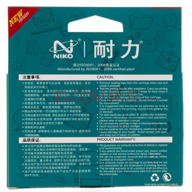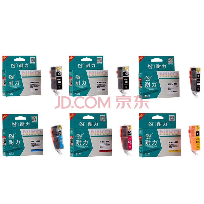 耐力(NIKO)N PGI-825 四色墨盒套装(6支装) (适用佳能 PIXMA iP4980/iX6580/MX898/MG8280/MG6280/MG5380)