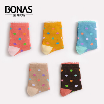 宝娜斯(BONAS)儿童袜子男童女童宝宝棉袜秋冬季保暖袜子5双装 10-12岁 QD15-1