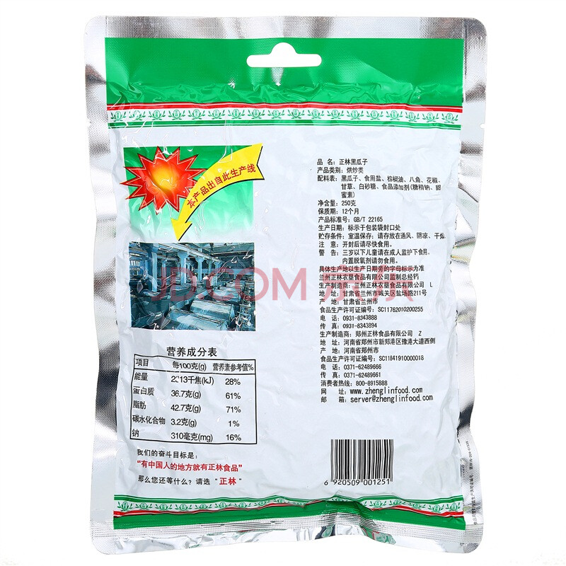 正林 休闲零食 坚果炒货 黑瓜子250g/袋