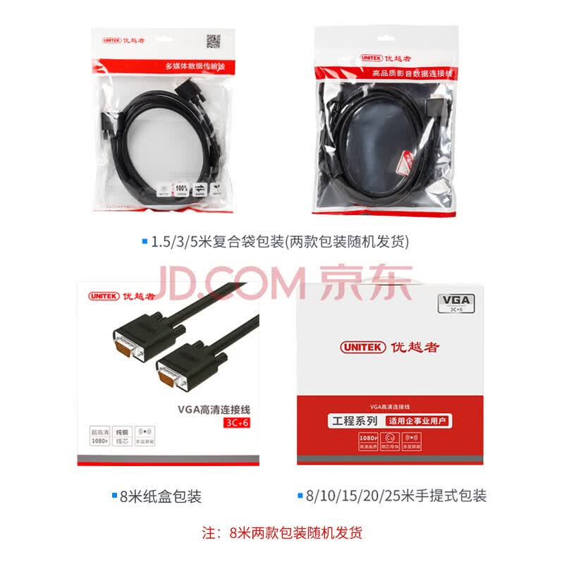 优越者(UNITEK)VGA线 电脑显示器连接线投影仪3米 3+6视频延长数据线 纯铜双磁环高清线Y-C504A