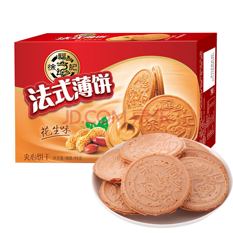 徐福记 法式薄饼 夹心饼干 花生味 休闲零食下午茶点心84g