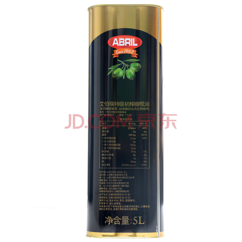 西班牙 艾伯瑞ABRIL 特级初榨橄榄油5L