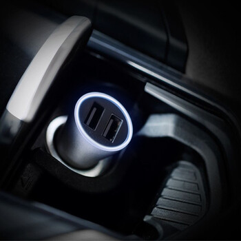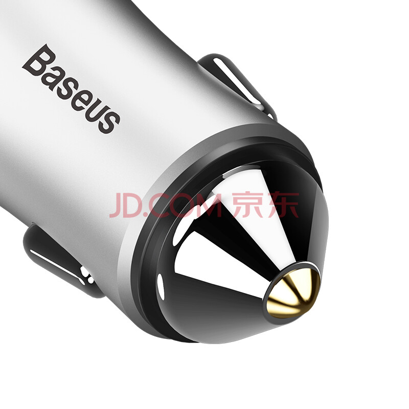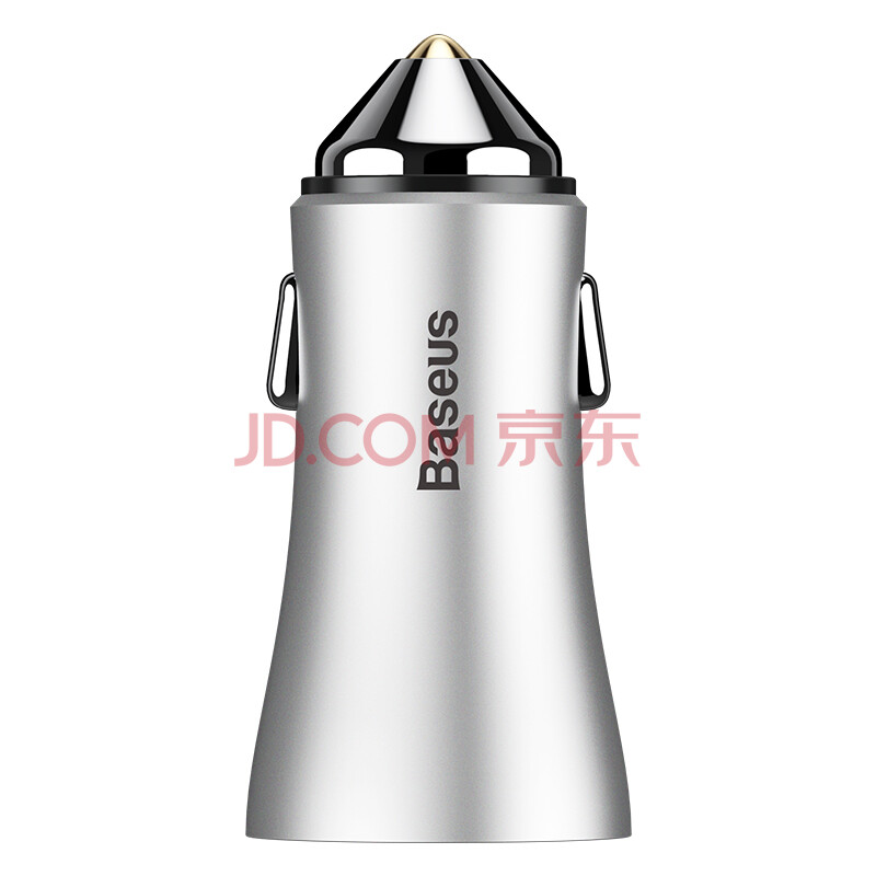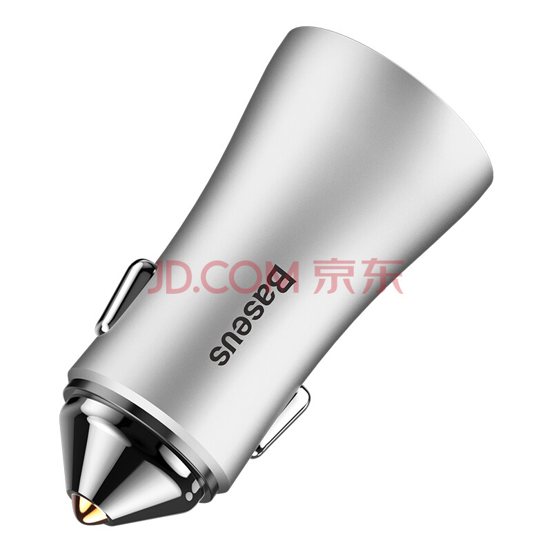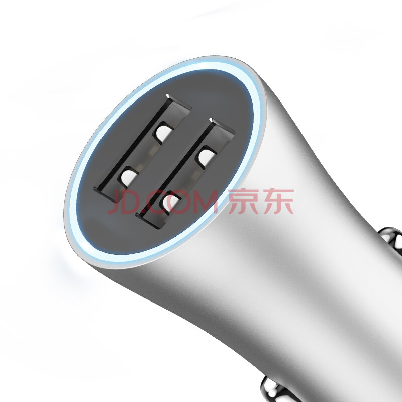 倍思(Baseus)车载充电器车充点烟器汽车手机充电器 双USB一拖二智能车充氛围灯 2.4A 银色