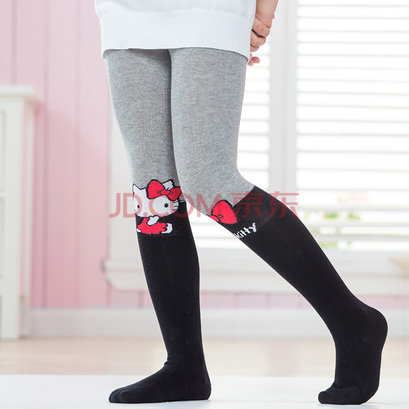 凯蒂猫(HELLO KITTY)儿童连裤袜女童打底裤小孩宝宝连裤袜舞蹈袜 KT8031 灰/黑 110