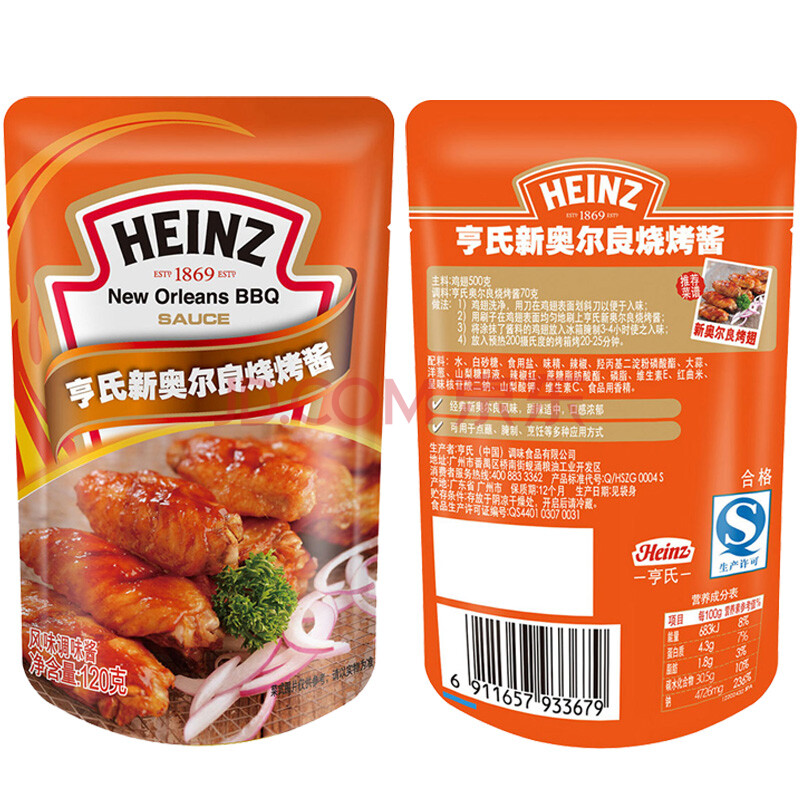 亨氏(Heinz)新奥尔良烧烤酱 120g 调料调味品 西餐佐料 烧烤调料 烘焙原料