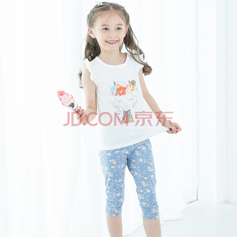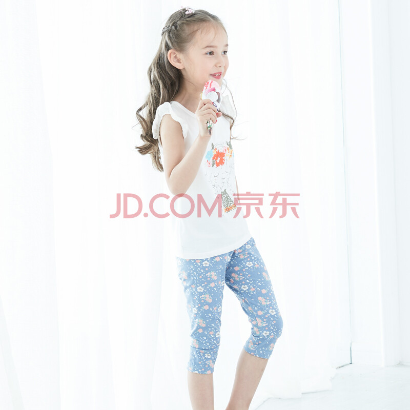 欧麦贝贝女童短袖套装 夏装薄款儿童短袖短裤套装半袖t恤 花朵女孩白色 130CM