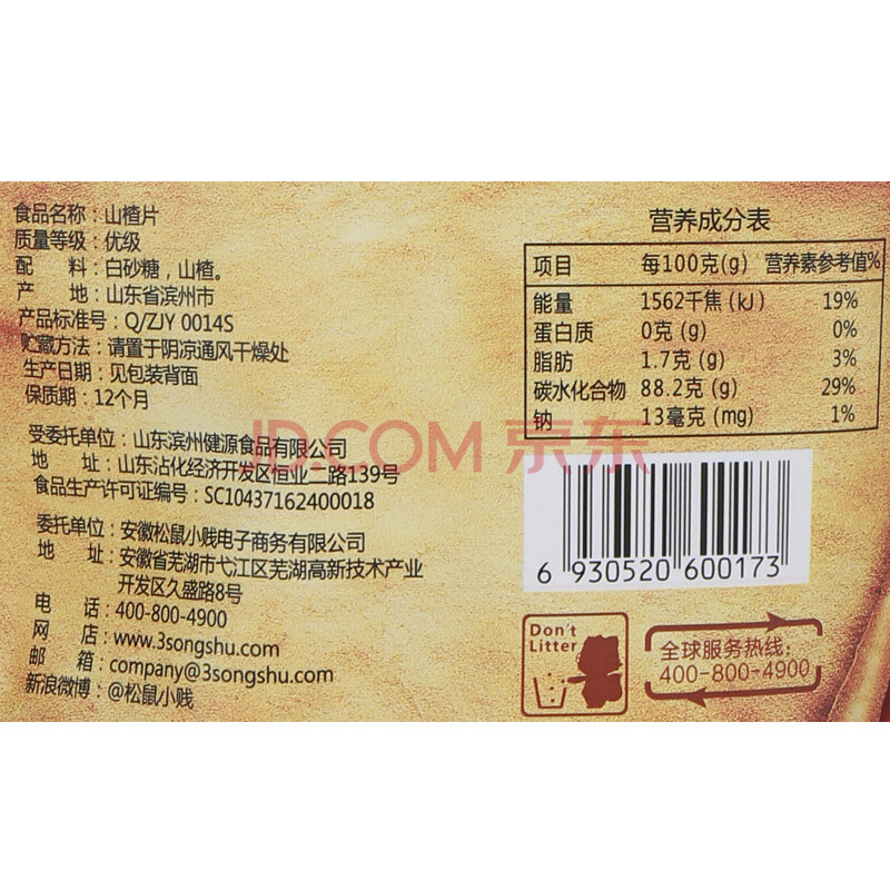 三只松鼠蜜饯果干果脯休闲零食小贱山楂片258g/袋